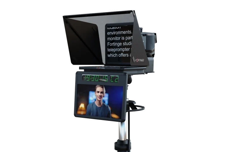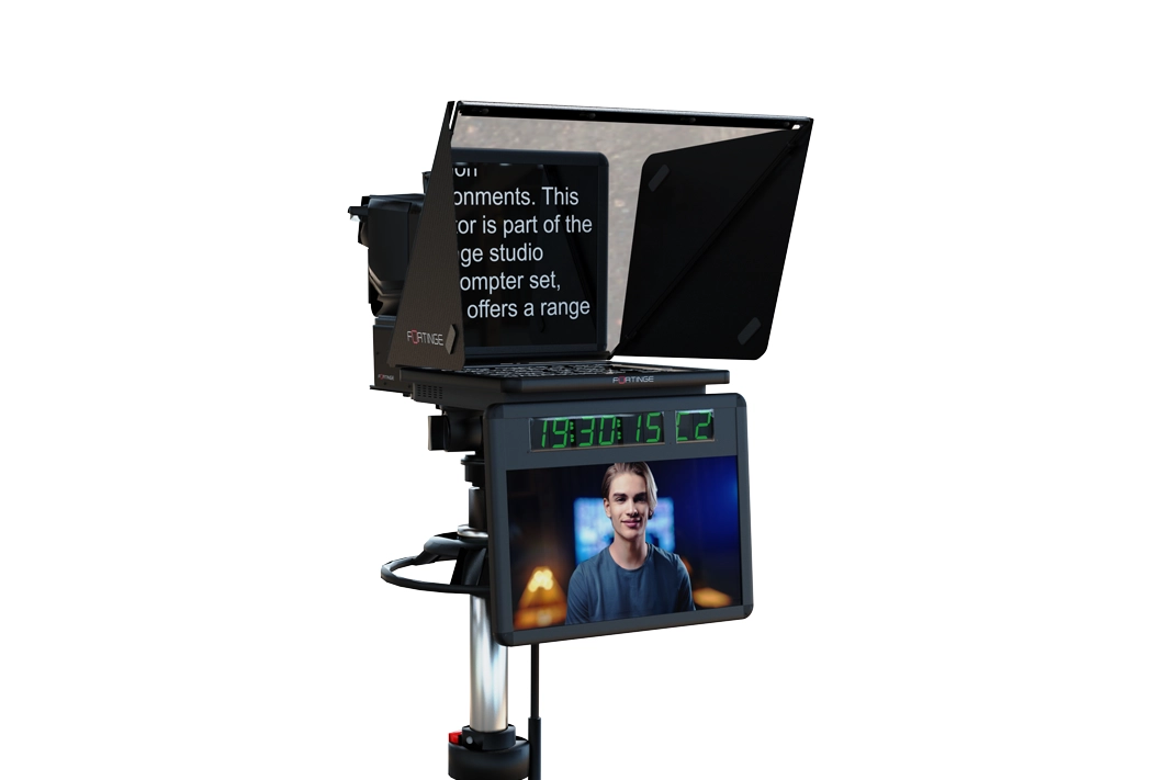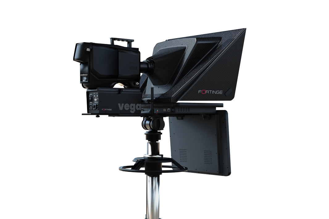 The VEGA Studio Teleprompter combines carbon fiber precision with a foldable, compact design—engineered to redefine professional broadcasting.